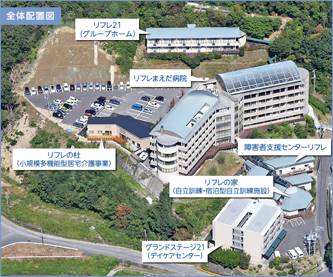| 2階 | デイナイトケア 食堂、手工芸室、調理実習室、デイケアルーム、更衣室、図書・自習室、生活機能訓練室、作業療法室 |